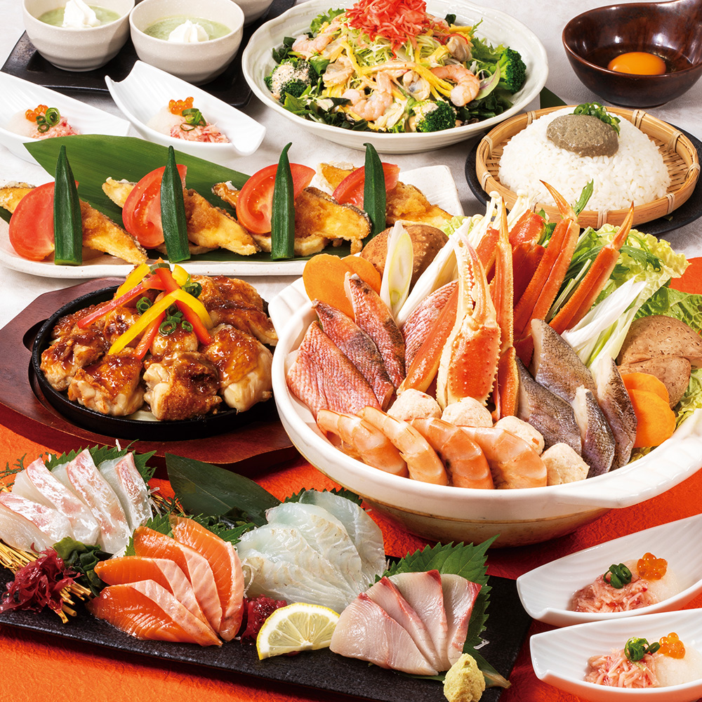 <横断幕特典>【秋プレミアム】日~木は更にお得!ズワイ蟹やステーキ等9品+飲み放題付6500円